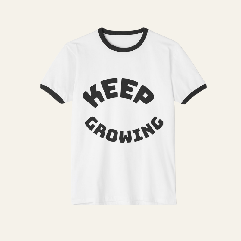 The Keep Growing Ringer Tee is a daily reminder to rise, thrive, and embrace positivity. Crafted in soft cotton with a retro edge, it’s perfect for casual days, gifting to nature lovers, or adding inspiration to your everyday style. Comfortable, timeless, and made to keep you moving forward.